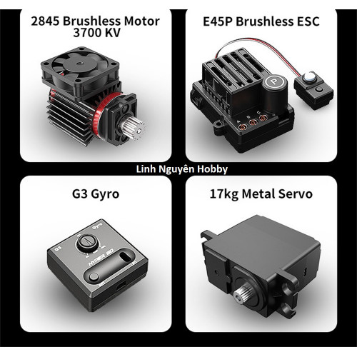 Mô tả: Thông tin cơ bản Mẫu: HYPER GO 304 Tỷ lệ: 1/14 Hệ thống điện ESC: 45A (Hỗ trợ pin 2-3S) Động cơ: Không chổi than 2845 3700KV với quạt tản nhiệt nhôm Servo: Servo kỹ thuật số 17g 2.1KG Bộ điều khiển từ xa Tần số: 2.4 GHZ Pin: 2 pin AA (không bao gồm) Pin: 7.4V 2000mAh 15C 2S Li-ion đầu cắm T Khác Thời gian sạc: 4 giờ Thời gian sử dụng: ≥13 phút Điều khiển Khoảng cách: 120m Chức năng: tiến, lùi, trái, phải Kích thước Kích thước: 320*153*115mm Chiều dài cơ sở: 192mm Chiều rộng bánh xe: 125mm Đường kính lốp: 58mm Kích thước đóng gói: 35*20.3*16.6cm Bộ sản phẩm bao gồm: 1x xe điều khiển từ xa 1x pin 1x bộ điều khiển từ xa 1x sách hướng dẫn sử dụng 1x cáp sạc USB 1x cờ lê lục giác 1x tua vít 4x lốp TPR 4x lốp trơn